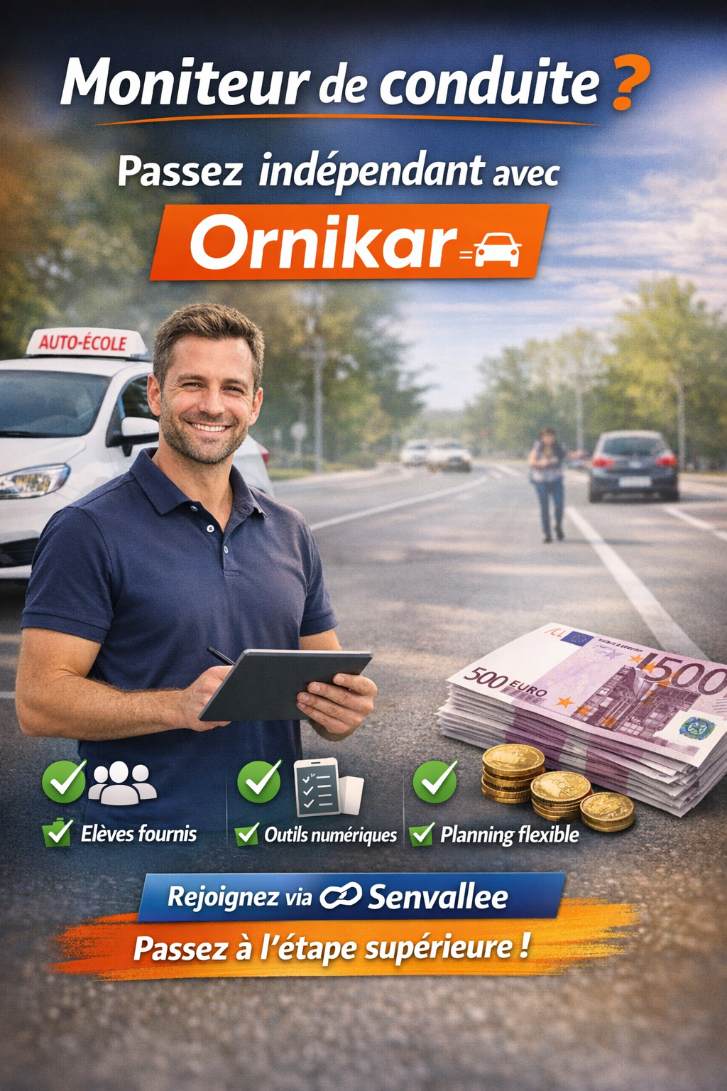 Devenez indépendant avec Ornikar : Liberté. Flexibilité. Revenus.